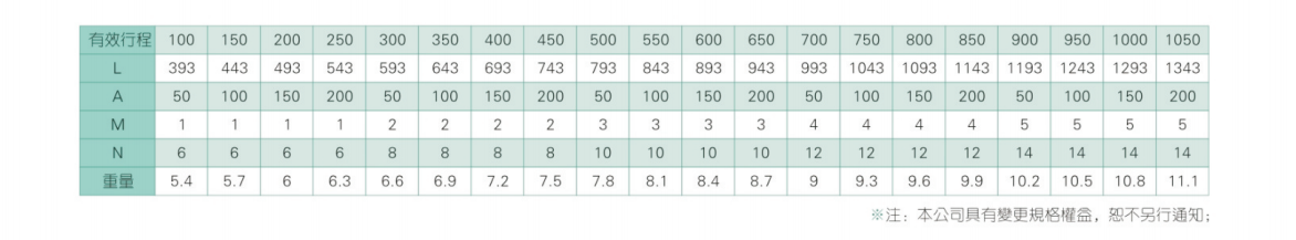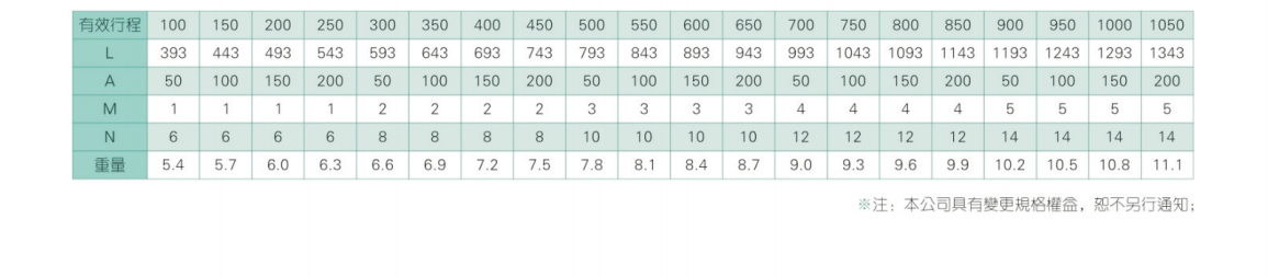 2、螺桿轉速超過臨界轉速時可能發(fā)生共振,臨界轉速和螺桿長度有關,故滾珠螺桿的臨界轉速也間接決定了滑臺模組的有效行程和總長度,有效行程和常用螺桿規(guī)格轉速的關系如下列表格。
